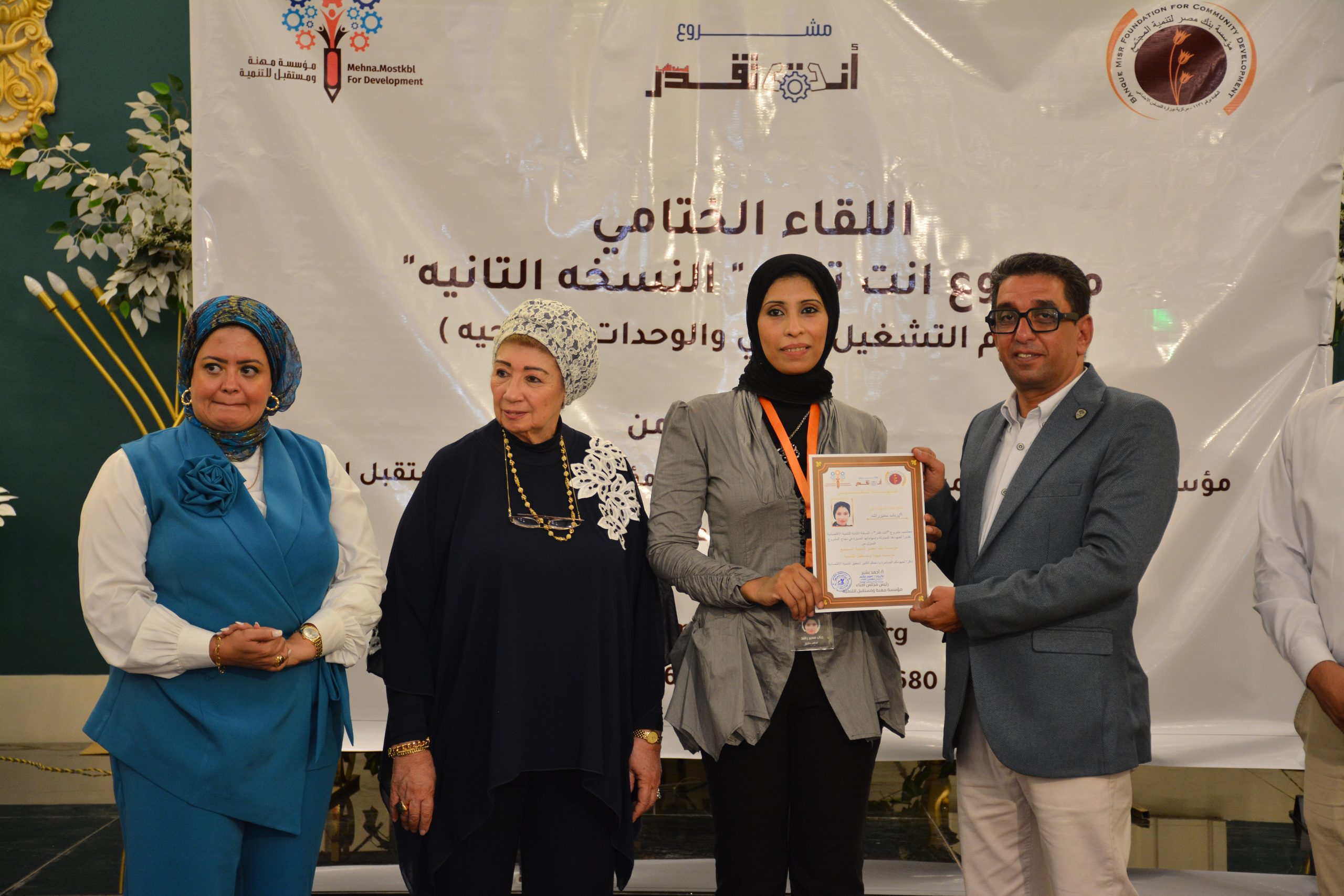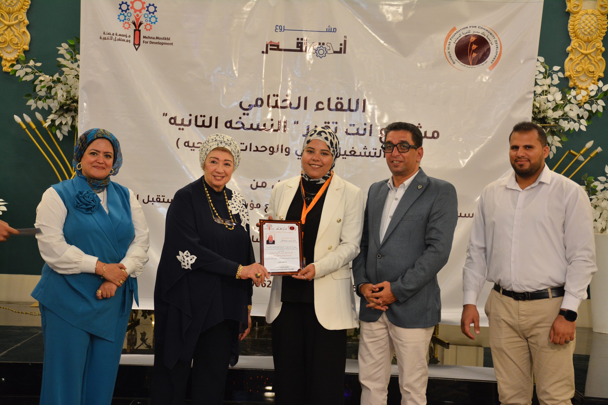 شهد يوم الثلاثاء الموافق ١٦ يوليو ٢٠٢٤ حدثًا مميزًا تمثل في تكريم فريق عمل مؤسسة مهنة ومستقبل للتنمية، وذلك بحضور الاستاذ أحمد بشير، رئيس مؤسسة مهنة ومستقبل للتنمية، والأستاذة هناء البوريني، المدير العام لمؤسسة بنك مصر لتنمية المجتمع، والأستاذة شيماء الحسيني، أمين صندوق مؤسسة مهنة ومستقبل للتنمية، والأستاذ أحمد عماد، المسؤول المالي لمؤسسة بنك مصر لتنمية المجتمع والاستاذة عبير فتحى مدير مشروع انت تقدر النسخة الثانية للتنمية الاقتصادية .