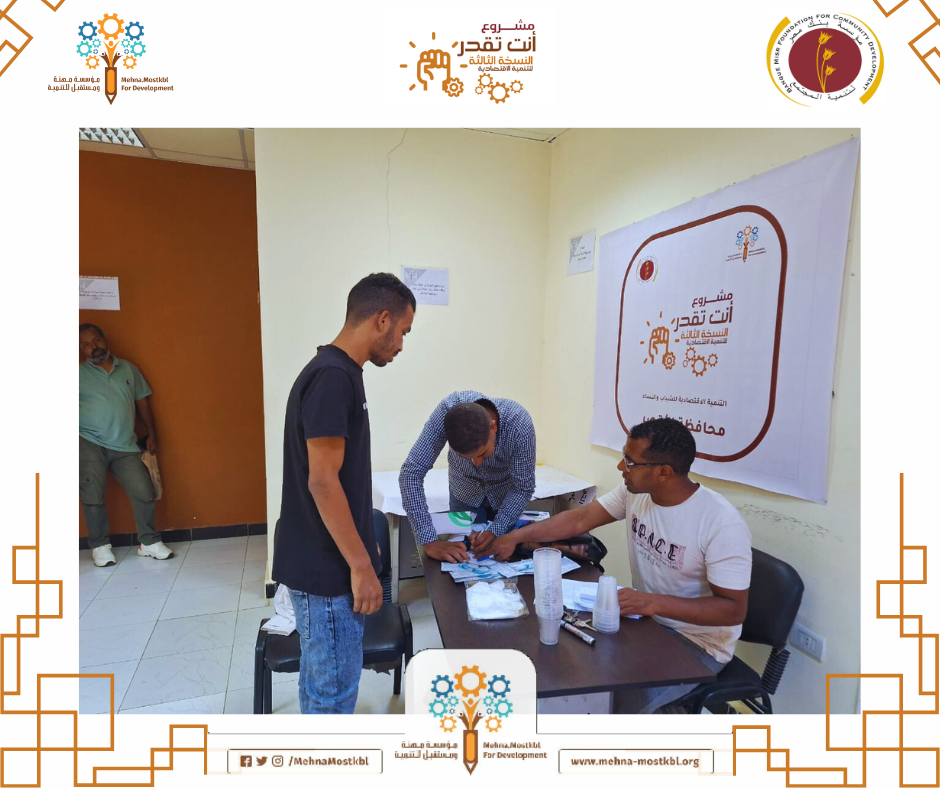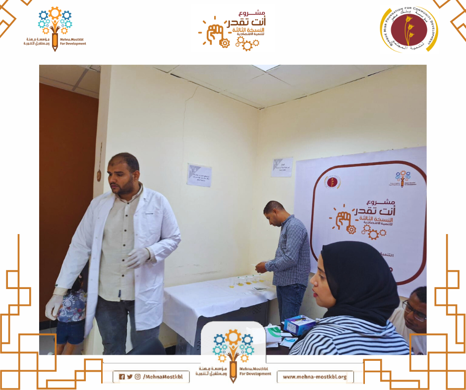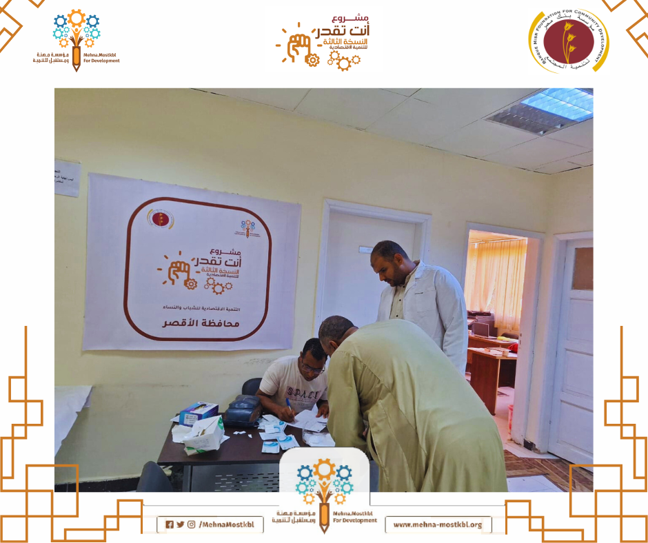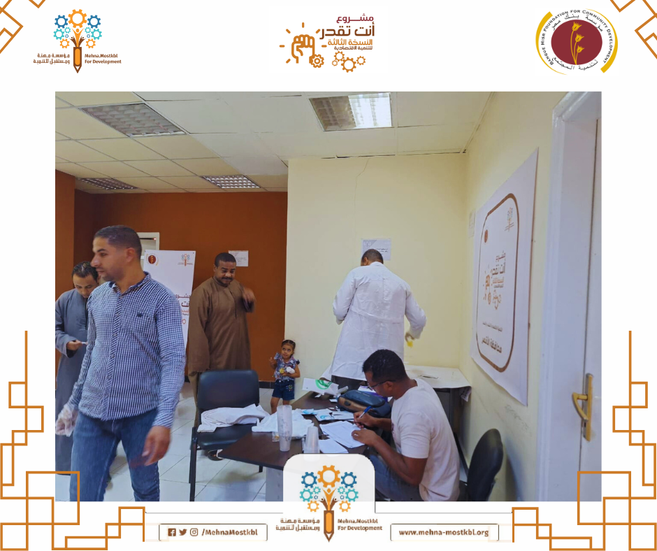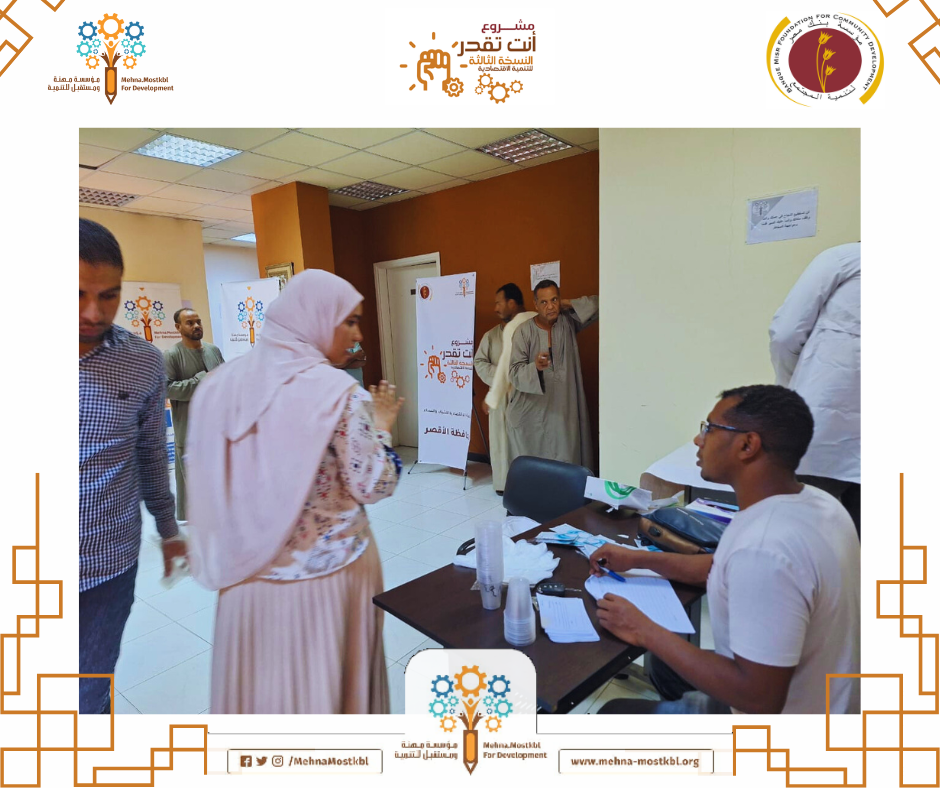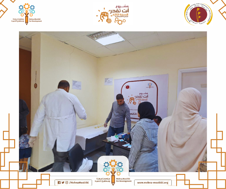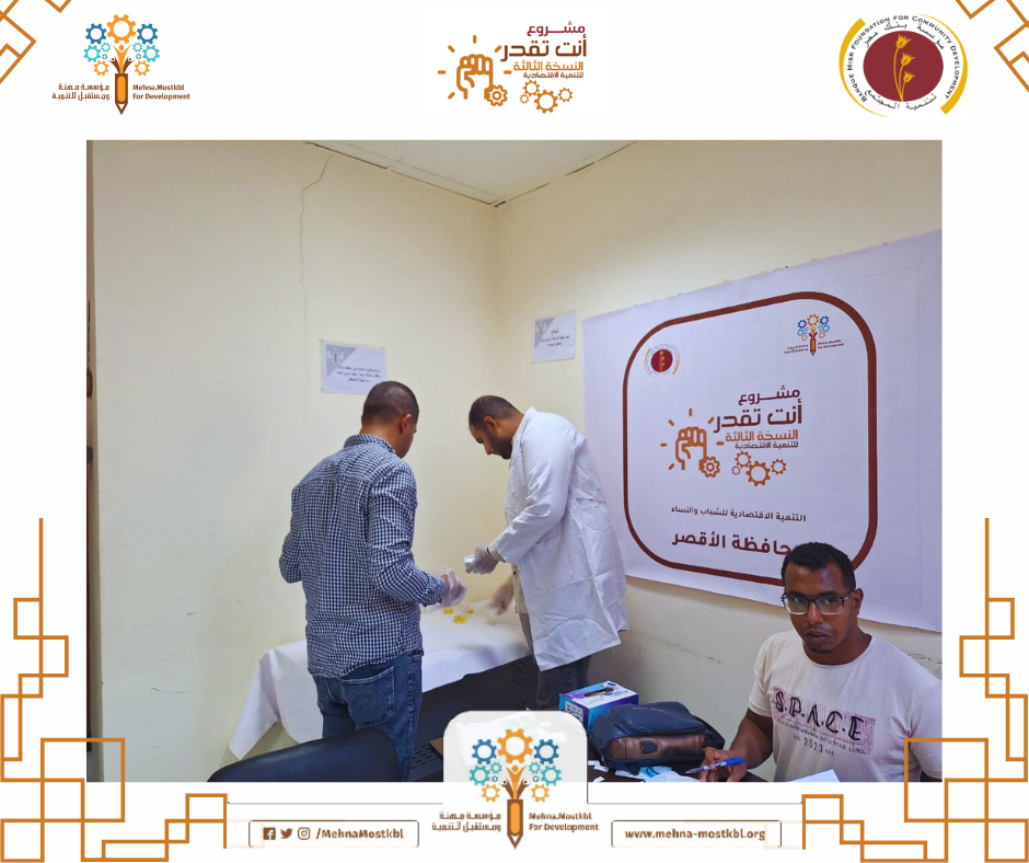 مؤسسة مهنة ومستقبل للتنمية تنفذ إجراءات تحليل المخدرات للمستفيدين من مشروع أنت تقدر النسخة الثالثة بمحافظة الأقصر